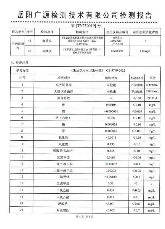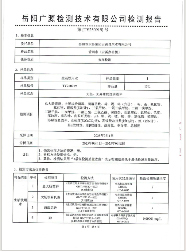 2025年9月岳阳市水务集团管网水水质检测月报表