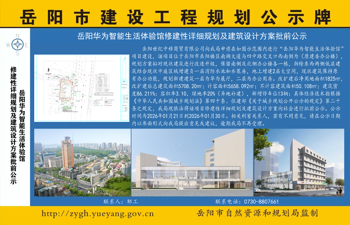 岳阳华为智能生活体验馆修建性详细规划及建筑设计方案批前公示