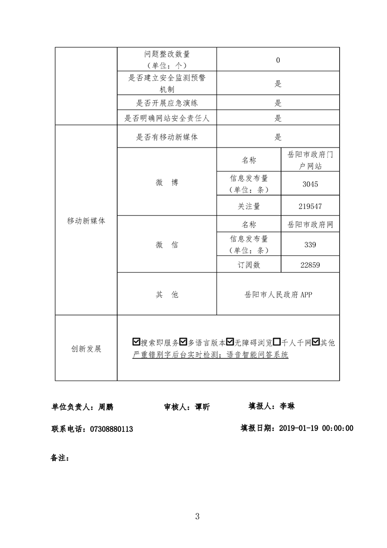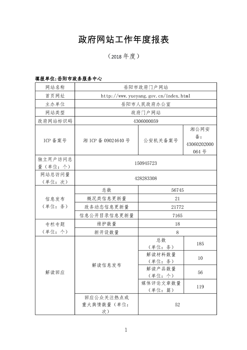 2018年度岳阳市人民政府网站工作年度报表