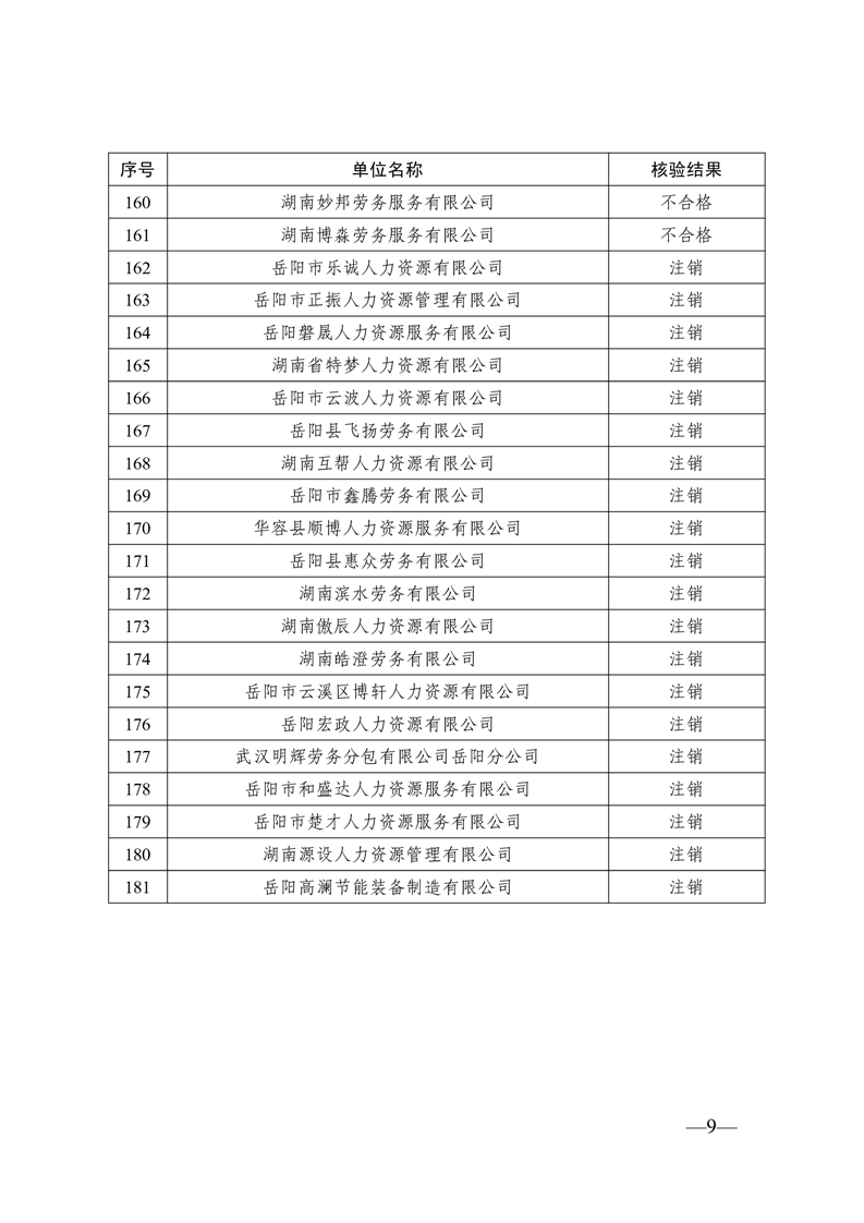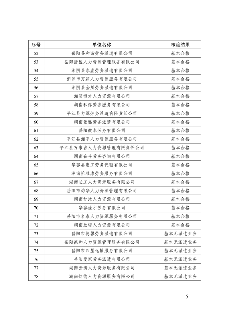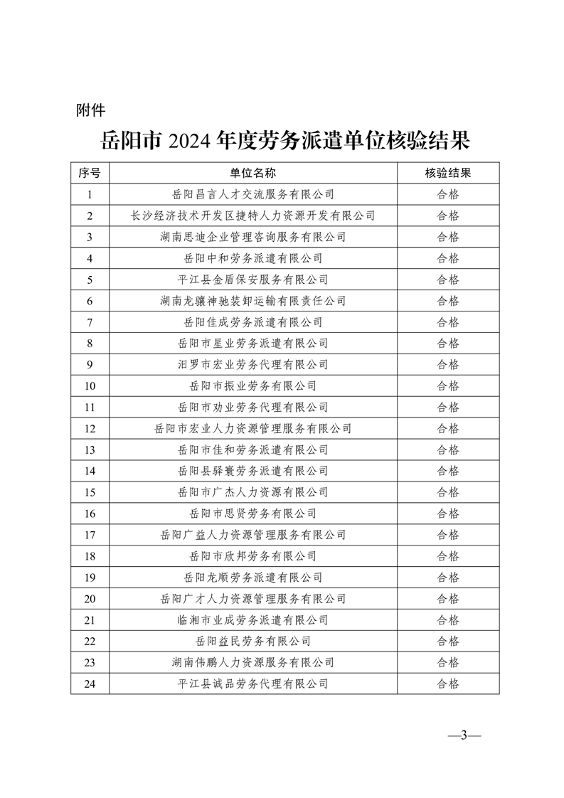 关于2024年度岳阳市劳务派遣单位核验结果的通报