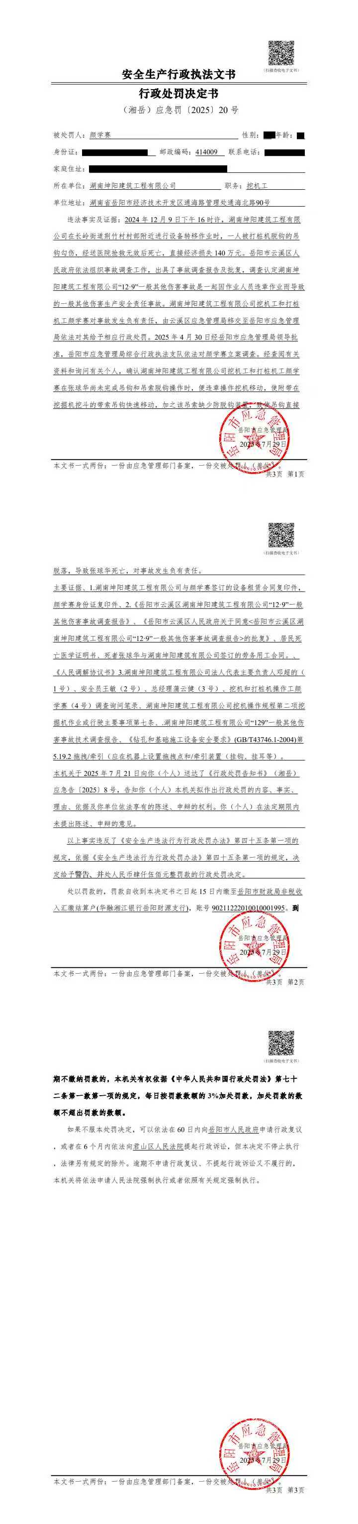 颜学赛处罚决定书