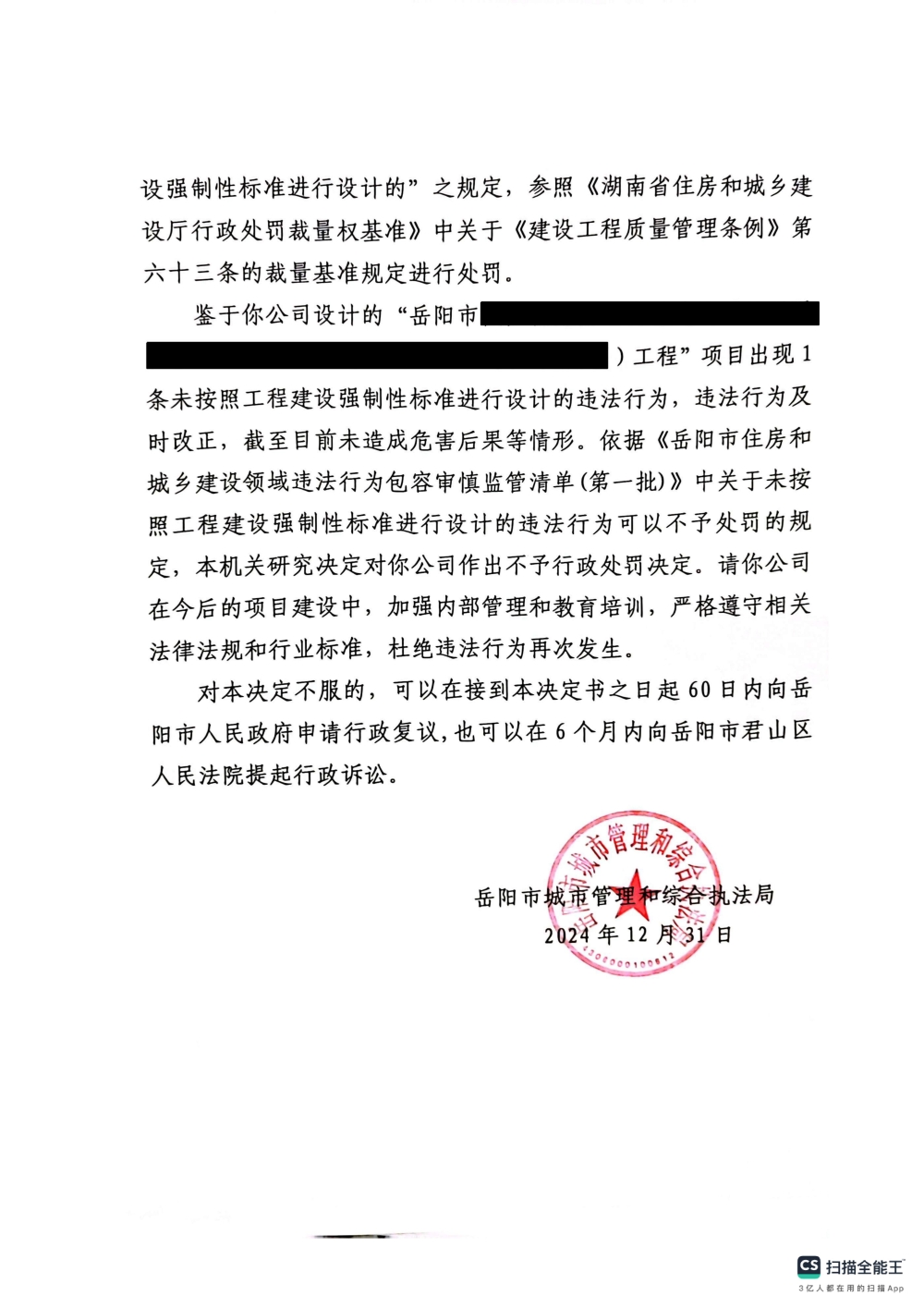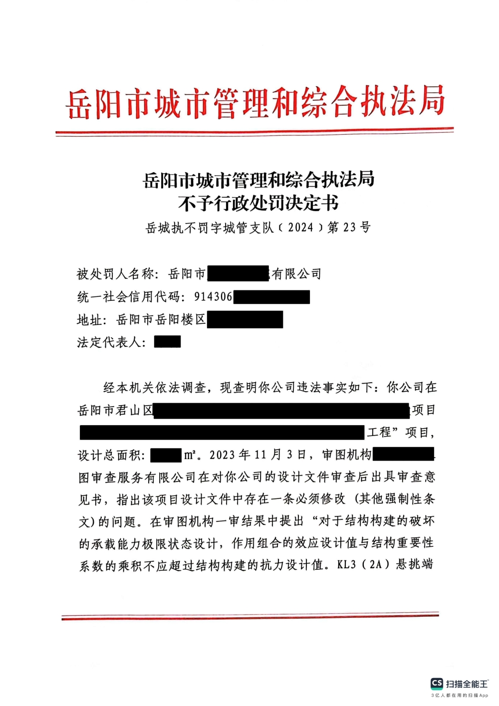 不予行政处罚决定书(岳城执不罚字城管支队〔2024〕第23号)