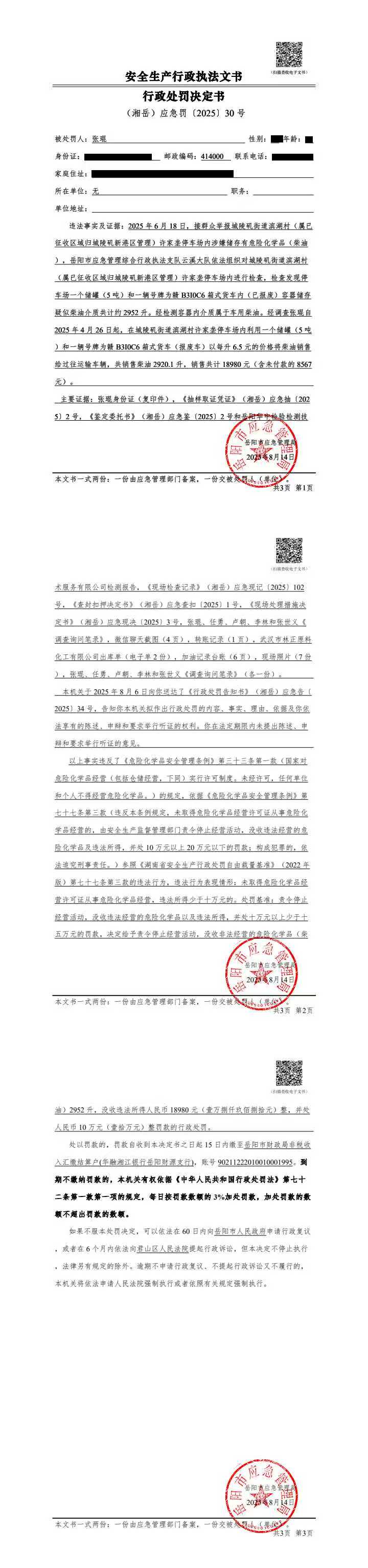 张琨处罚决定书