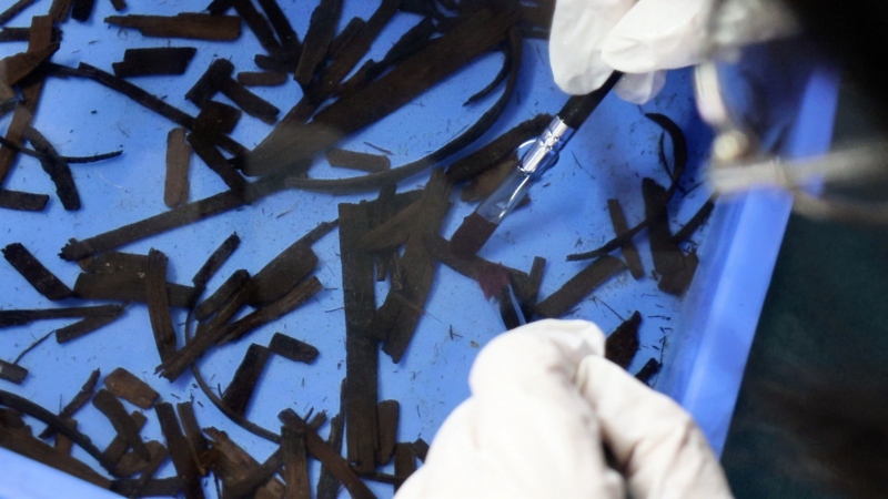 在李维君眼里,每一次工作都像在与古人展开无声对话。从清理泥土到妥善保存,从菌群抑制到纤维加固,不同的修复环节对应不同的光源、溶液和工具,有的步骤甚至要反复试验多次。李维君说:“不是文物跟着我们走,而是我们跟着文物走。”